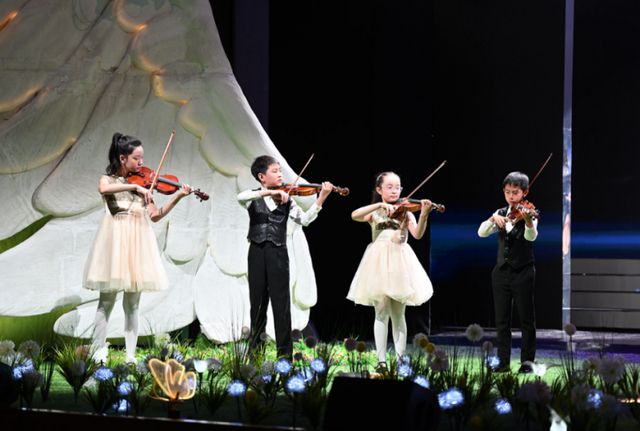 中、西器乐演奏《丝海弦音》,民乐与西乐交汇演绎动人乐章。动画音乐联唱《时光机里的童年梦》,用承载着欢笑与畅想的动画歌曲奏响属于少年儿童的欢乐节拍。“一带一路”舞乐表演《丝路风景线》、舞蹈《跨越山海,同心共舞》,带领小朋友们领略独特异域风情,感受多元文化交融共鸣、和谐共舞的美好图景。